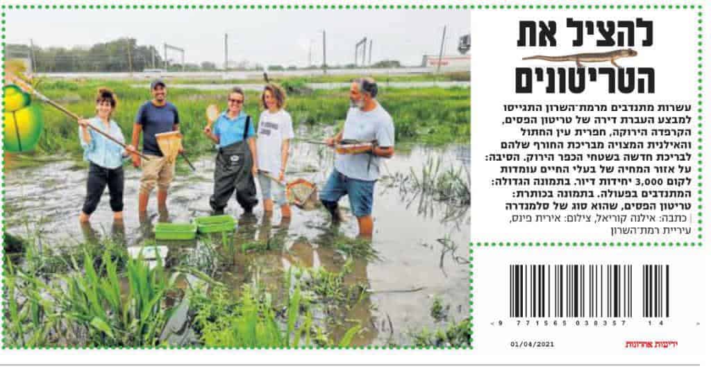 המבצע להצלת טריטון הפסים ברמת השרון, ידיעות אחרונות