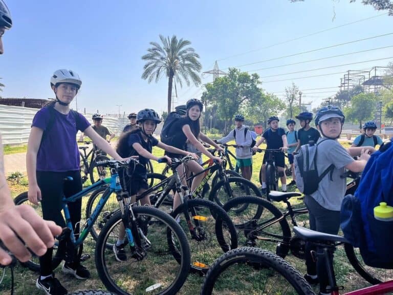 תלמידי כיתה ז’4 בבוקר רכיבת אופניים לאורך הירקון