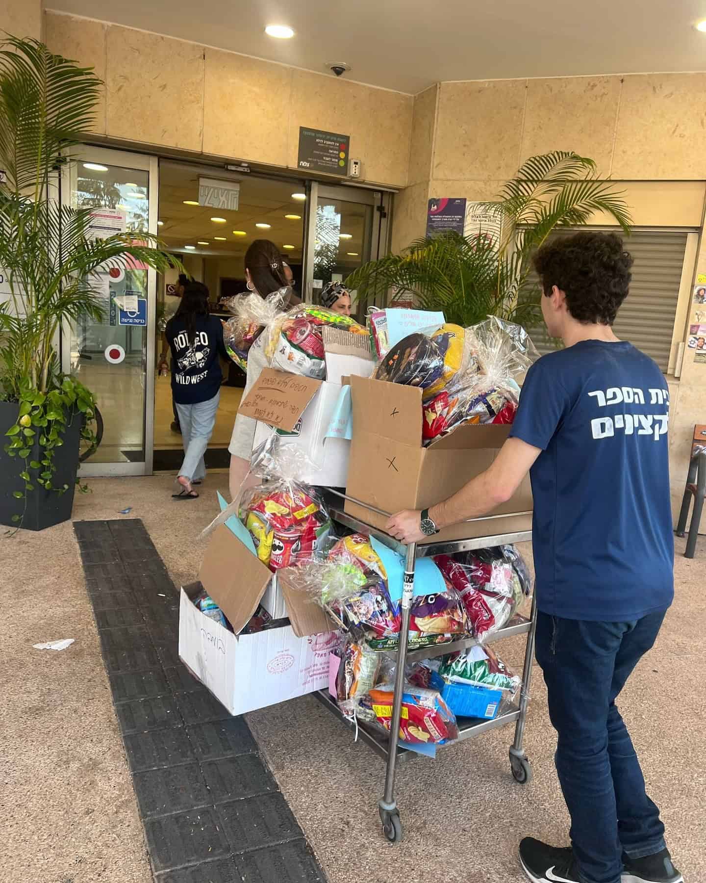 ביום ראשון, 16.3, חילקנו את משלוחי המנות לחיילים במחלקות השיקום בביה”ח שיבא וראינו את החיוכים וההתרגשות על פניהם